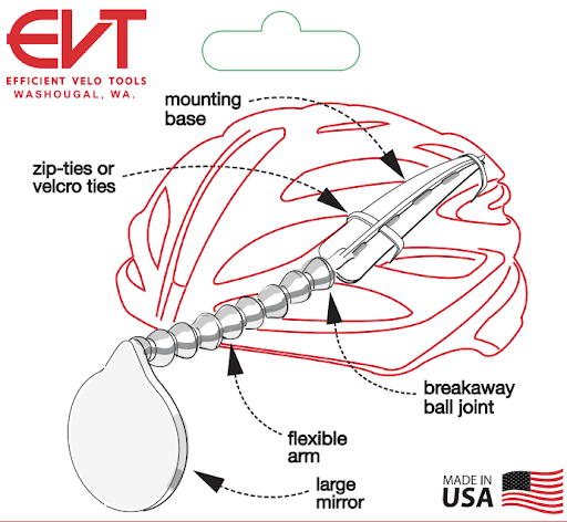 The EVT Safe Zone Bicycle Helmet Mirror is simply the highest quality helmet-mounted bicycle mirror on the market.